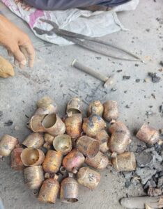 The craft is a community effort. While the men beat iron sheets into shape, the women of the Lohar community prepare the clay coating that is vital to the process. The bells are first hammered into their required form, then coated in a copper–brass mixture. A sleeve of clay-dough is applied before they are fired in a kiln. In the heat, the metal alloy melts and fuses with the iron. When the clay casing is broken away, the finished bell emerges—gleaming, resonant, and ready to sing.