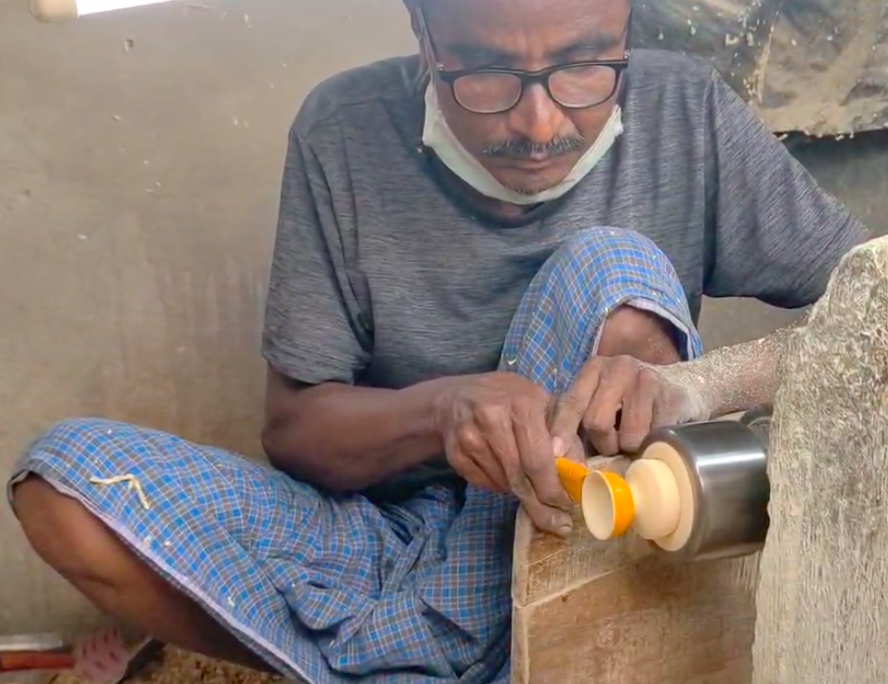 There are about 100 artisan families in the village, working on and practicing the craft. Similar to its Karnataka cousin, the more famous Channapatna, the artisans work on natural ivorywood (botanical name: Wrightia tinctoria) to create the striking pieces.