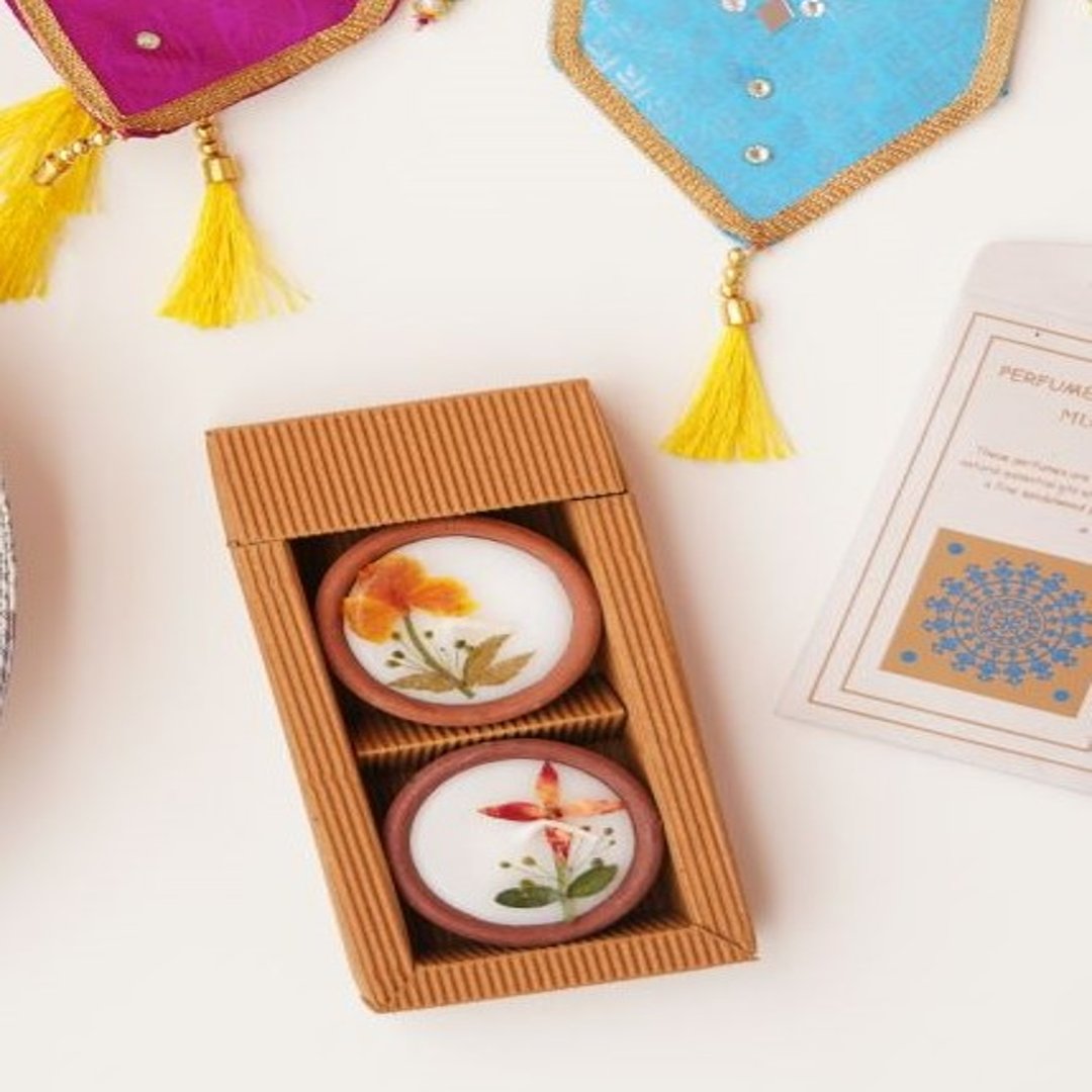 Handmade with terracotta, wax, and natural flowers in Pondicherry.