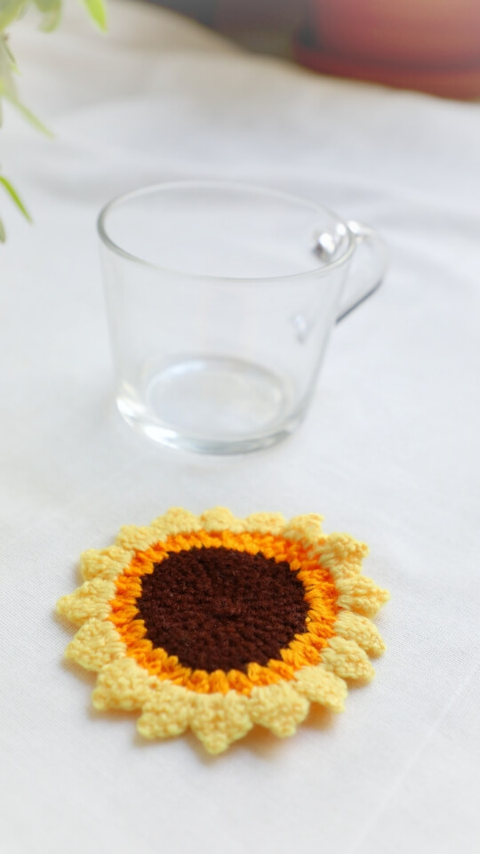 Dimensions: Diameter: 4 inches Primary material: Crochet Thread State of origin: Goa Made by: Goa Craft Cluster Note: Slight variations in designs are to be expected from handmade products. Care information: Hand Wash gently Recycling idea: String up a line of coasters to create a colourful thoran,vertically or horizontally! Vegan: Yes